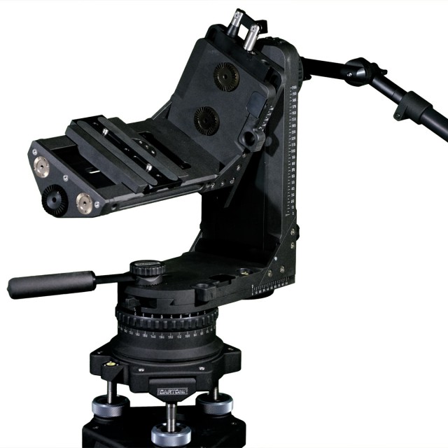Optionales Zubehör wie die 3. Achse, die ausrichtbare Schwenkstange, das Lenkrad, der Okularhalter und die Gegengewichtsstangen vervollständigen den vielseitigen Träger.