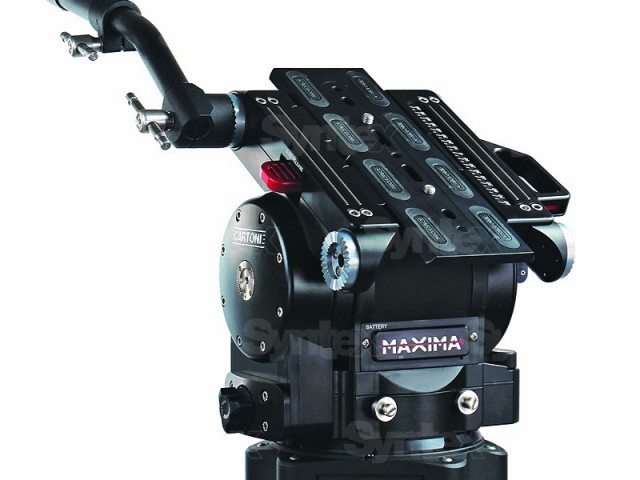 Alle Bedienelemente des Maxima-Kopfes sind so positioniert, dass sie für jede Art von Dreharbeiten, ob im Studio oder am Drehort, perfekt zu bedienen sind. Die Einstellungen von Reibung und Gegengewicht können auf dem Display überwacht werden. Die patentierte Fluid Drag System-Technologie ermöglicht die Einstellung der Reibung für eine nahezu freie Kamerabewegung sowie für einen starren, gleichmäßigen Betrieb. Die große Kameraplatte ist mit ARRI- und O'Connor-Systemen kompatibel. Der Maxima-Kopf ist sowohl extrem langlebig als auch präzise und stellt den neuen, anerkannten Standard in der Film- und Fernsehtechnik dar!