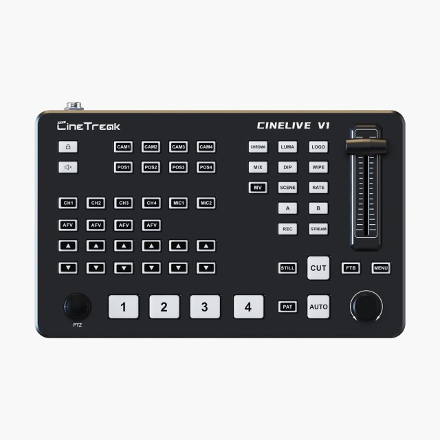 Der CineTreak Cinelive V1 ist ein vielseitiger Multikamera-Livestream-Switcher mit 4 HDMI-Eingängen, professionellem Chroma-Keying, PTZ-Steuerung, UVC-Ausgang und RTMP-Unterstützung - ideal für Live-Produktionen, Streaming und Event-Übertragungen.