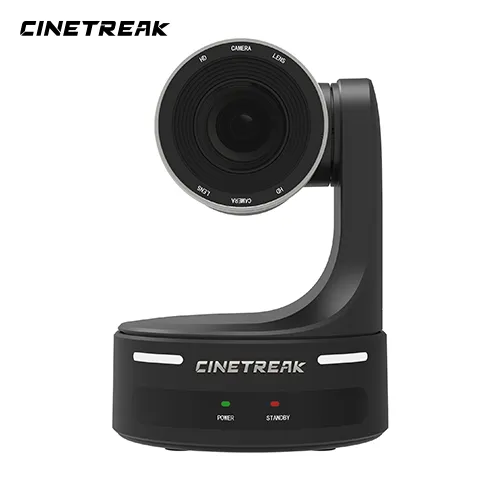 Die CineTreak CT-PT20 ist eine hochauflösende PTZ-Kamera, die für dynamische Videoproduktion und Streaming entwickelt wurde. Ausgestattet mit einem 1/2,8-Zoll-HD-CMOS-Sensor nimmt sie ruckelfreie Full-HD-Videos mit 1080p60 auf und verfügt über eine automatische Nachführung, die sicherstellt, dass Moderatoren oder Sprecher ohne manuelle Anpassung im Bild bleiben. Der 20-fache optische Zoom und der 16-fache digitale Zoom ermöglichen präzise Nahaufnahmen auch aus großen Entfernungen und eignen sich damit für Hörsäle, Klassenzimmer, Studios und Veranstaltungsorte.