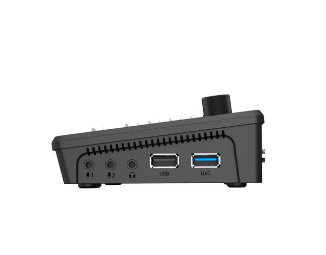 Flexibilität durch mehrere Eingänge – Mixer Plus ist ein kompakter und voll ausgestatteter Videoumschalter, der sowohl in einer HDMI- als auch in einer SDI-Eingangsversion erhältlich ist und speziell für die Anforderungen professioneller Live-Produktionsumgebungen entwickelt wurde. Die HDMI-Version verfügt über vier HDMI-Eingänge, während das SDI-Modell vier SDI-Eingänge bietet. Beide Versionen unterstützen die Umschaltung hochwertiger Videosignale. Jedes Gerät verfügt über einen Programm-Ausgang (PGM) und einen AUX-Ausgang. Der AUX-Ausgang unterstützt Multi-View-Vorschauen sowie anpassbare Videosignalausgänge und bietet so außergewöhnliche Flexibilität bei Live-Übertragungen. Beide Versionen sind mit einem LAN-Anschluss ausgestattet, über den PTZ-Kameras gesteuert oder eine Verbindung zu unserer offiziellen Steuerungssoftware auf dem PC hergestellt werden kann, wodurch der volle Zugriff auf die Funktionen des Geräts ermöglicht wird. Zu den zusätzlichen Audiofunktionen gehören zwei Line-In-Audioeingänge und ein Kopfhörerausgang für die Audioüberwachung in Echtzeit. Der integrierte USB 2.0-Anschluss ermöglicht den einfachen Import von Mediendateien wie Logos, Hintergründen und Standbildern, während der Hochgeschwindigkeits-USB 3.0-Anschluss als UVC-Schnittstelle fungiert und die unkomprimierte HD-Videoaufnahme direkt in OBS und andere Live-Streaming-Software ermöglicht. Unabhängig davon, ob Sie HDMI- oder SDI-Workflows bevorzugen, bietet Mixer Plus eine zuverlässige, flexible und benutzerfreundliche Lösung für die Live-Produktion mit mehreren Kameras.