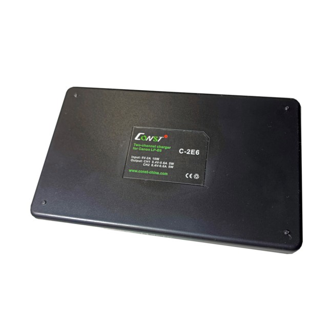 2 Stück CONST LC-E6 (LP-E6), 7.2V 1800mAh Akkus und CONST C-2E6 Zweikanal-Ladegerät