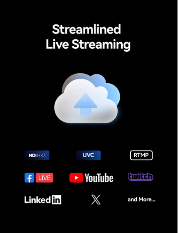 Die Cosmo C2 unterstützt SDI- und HDMI-Eingänge und -Ausgänge und ermöglicht so die nahtlose Integration mit professionellen Kameras und Monitoren. Außerdem bietet er UVC-Streaming-Fähigkeit über USB-C, wodurch externe Aufnahmekarten überflüssig werden. Der NDI-kompatible LAN-Anschluss ermöglicht direkte IP-basierte Video-Workflows, und die RTMP-Unterstützung ermöglicht direktes Cloud-Streaming, was ihn ideal für Remote-Produktionen macht.