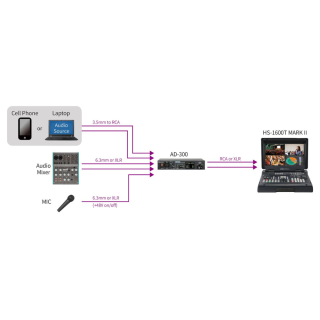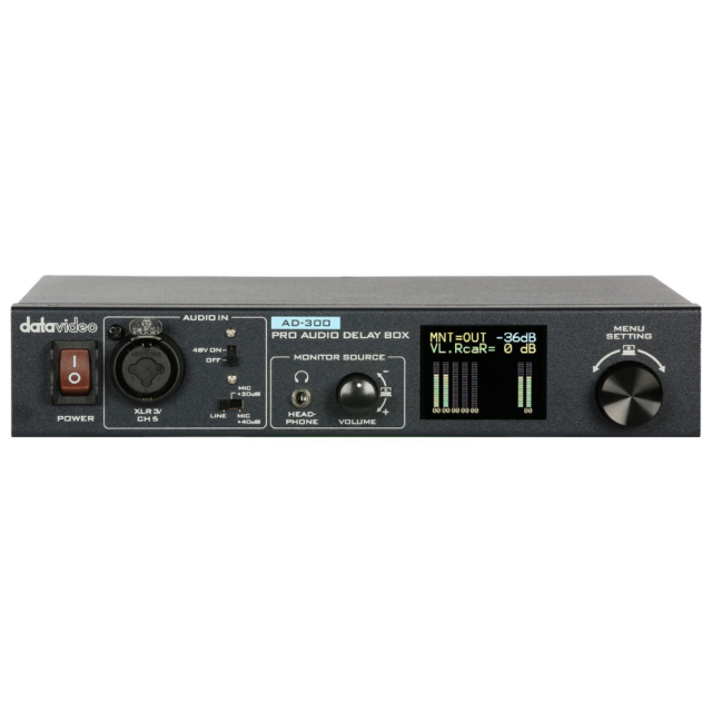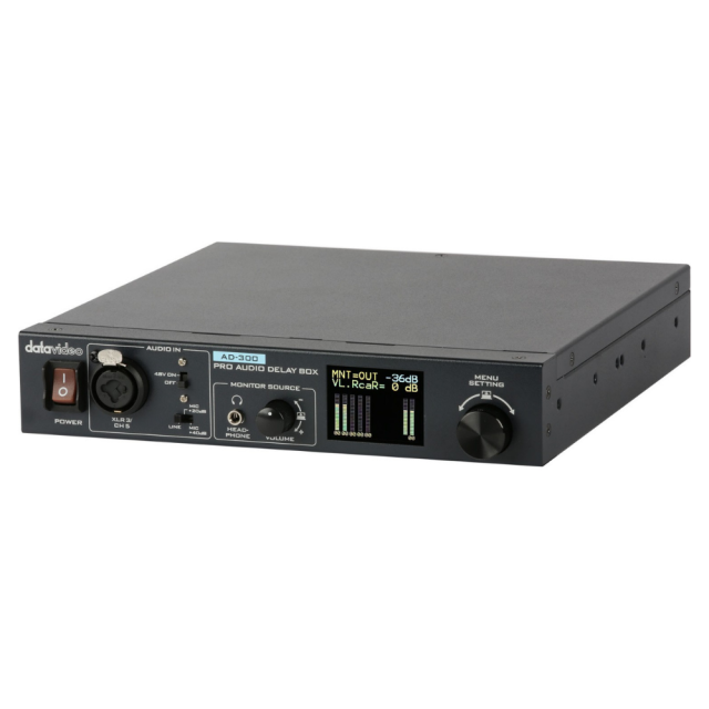 AD-300 ist eine einfach zu bedienende Audio-Delay-Box, mit der Sie Video und Audio synchronisieren können. Die neue professionelle Audio Delay Box AD-300 verfügt über 5 Eingangskanäle und 2 Ausgangskanäle sowie die Möglichkeit, mehrere Audioeingänge für Ihre Live-Produktion zu verarbeiten. Sie ist in einem robusten Metallgehäuse für den Einsatz im Feld oder im Studio untergebracht.