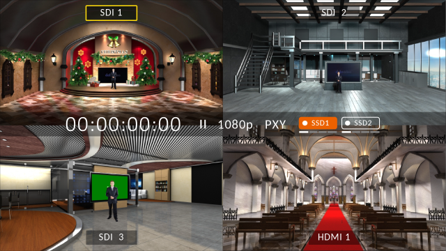 Anstatt eine einzige Quelle aufzuzeichnen, kann der HDR-80 so konfiguriert werden, dass er über die 4x 3G-SDI-Schnittstelle bis zu vier HD-Streams gleichzeitig aufzeichnet.
