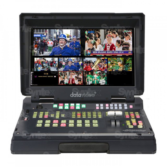 Der Datavideo HS-2200 ist ein tragbarer, koffermontierter Sechs-Kanal-Overhead mit HD-SDI- und HDMI-Schnittstellen und Unterstützung für Auflösungen bis zu 1080i. Er verfügt über ein 17,3-Zoll-Display, einen eingebauten Untertitler, eine Acht-Kanal-Gegensprechanlage, Bild-in-Bild-Funktionalität, vier Signallampen (Tally), Scheibenwischer, Luma-Taste und andere Funktionen...