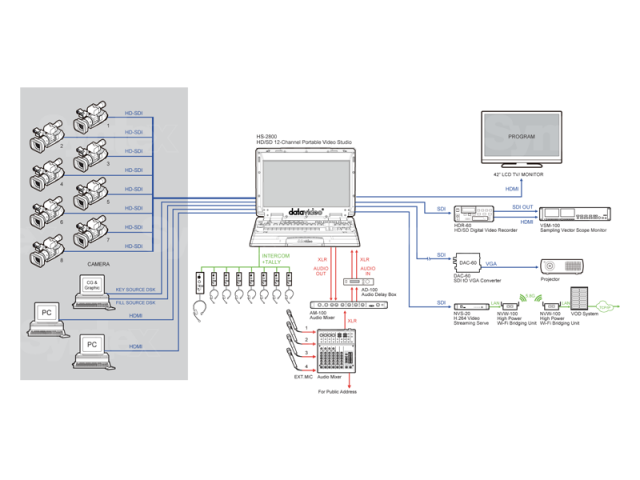 | HS-2850 HD/SD 8/12-Kanal tragbares Videostudio | |