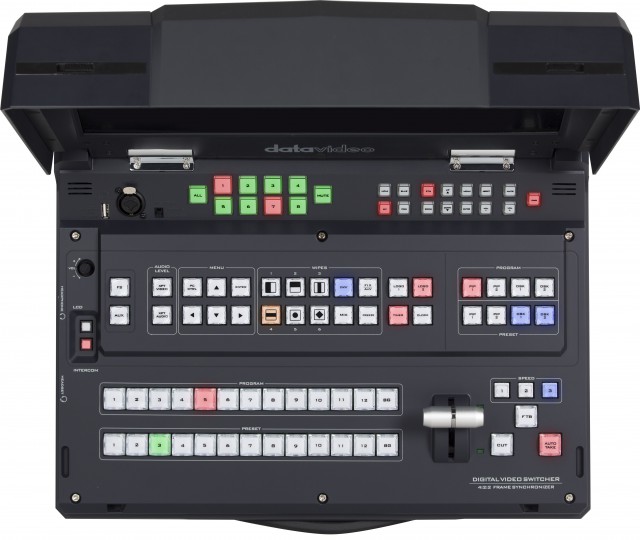 DerDatavideo HS-2850-8 ist ein tragbarer SD/HD 8-Kanal Video-Overhead mit einem 17,3" LCD-Display, Effekten, eingebautem Intercom und Tally-System.