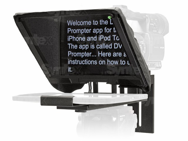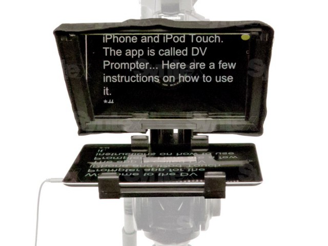 an der Kamera verwendet werden kann. Die Ausgabe der mitgelieferten DV Prompter Software, die im Apple Store oder Android Market heruntergeladen werden kann, kann auch auf einem externen Display mit dem Tablet-Zubehör (nicht im Lieferumfang enthalten) angezeigt werden.