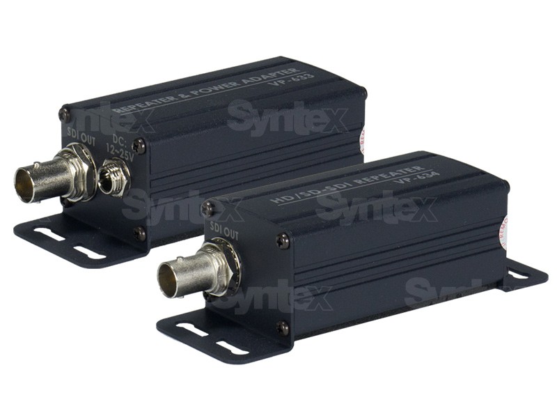 Der VP-633 SDI-Repeater kann die Reichweite des SDI-Signals um weitere 200 m erhöhen (bei Verwendung hochwertiger Kabel). Vier "Repeater" können in einer einzigen Kette verwendet werden, um eine Entfernung von bis zu 1000 m zu erreichen (wiederum unter Verwendung hochwertiger Kabel). Die Repeater haben keine Verzögerung in der Kette.