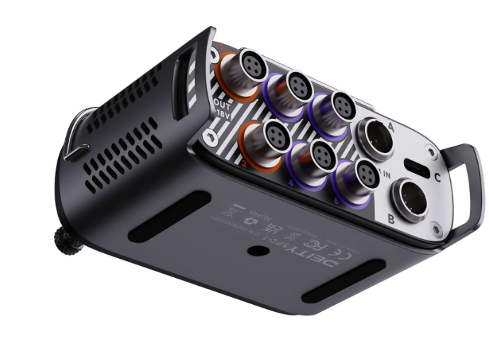 Ein integriertes 1,1-Zoll-Farbdisplay liefert klare Telemetriedaten und Echtzeit-Batterieinformationen, sodass Benutzer den Stromstatus überwachen, Batteriewechsel planen und unerwartete Abschaltungen vermeiden können. Der Verteiler verfügt über sechs Hirose-Ausgänge zur gleichzeitigen Stromversorgung mehrerer Audiogeräte sowie einen USB-A-Anschluss an der Vorderseite zum Laden kleiner Elektronikgeräte. Zusätzliche TA4- und USB-C-Eingänge bieten maximale Vielseitigkeit.