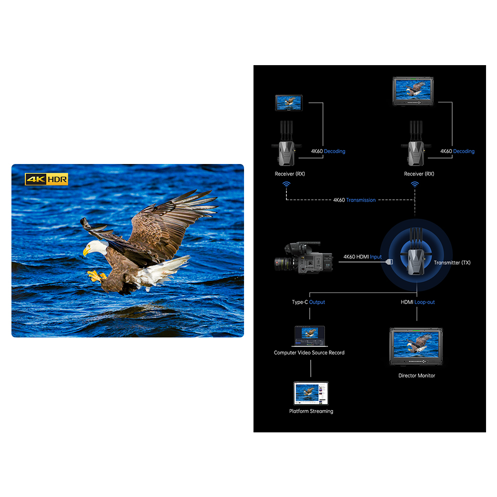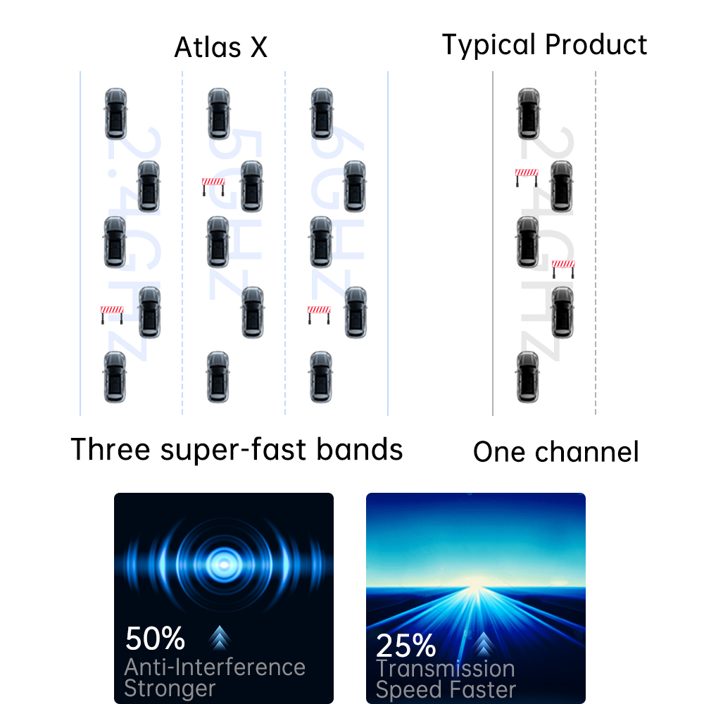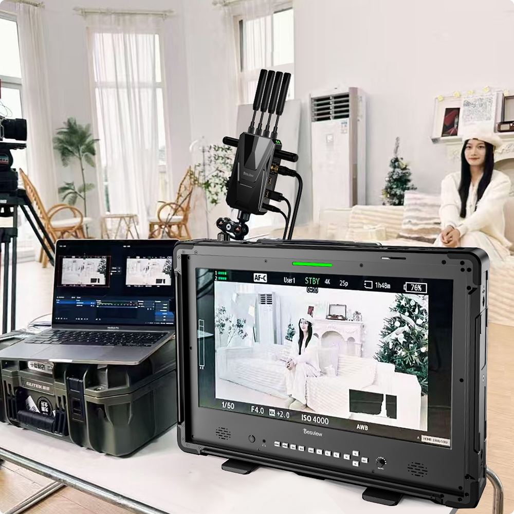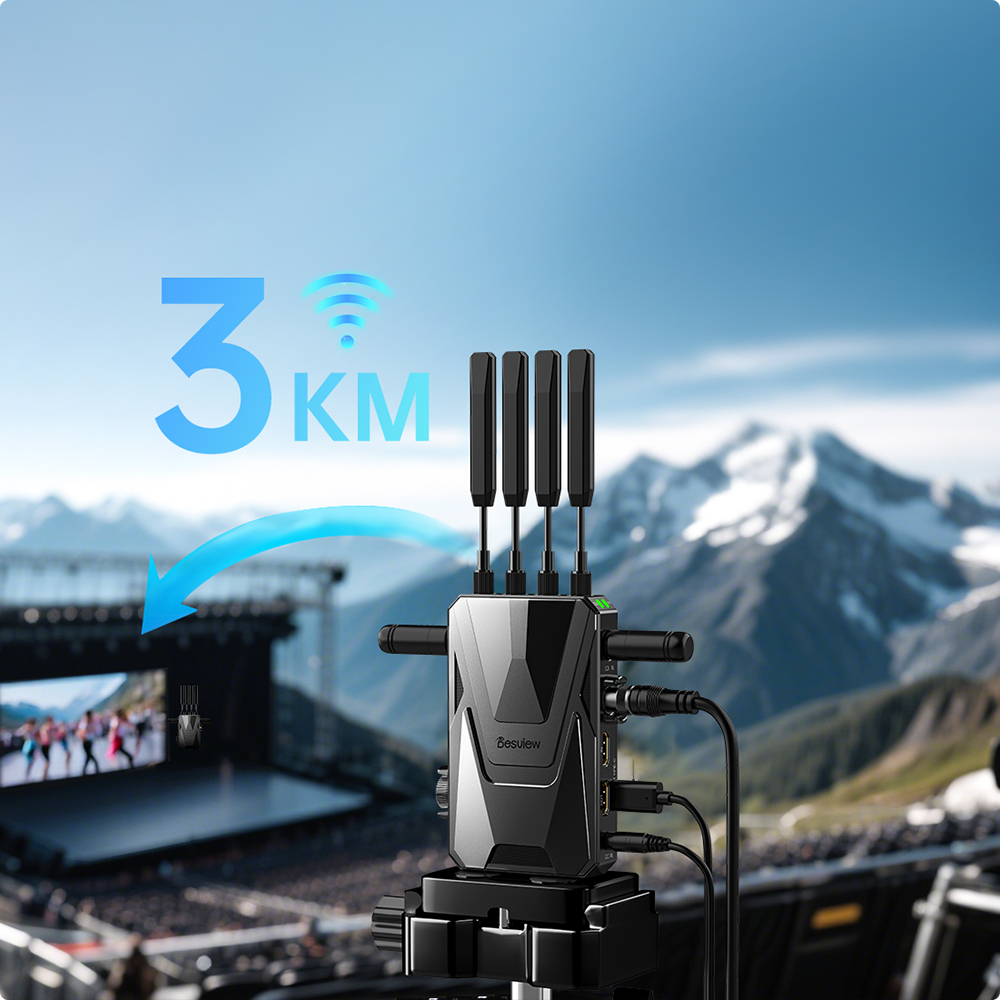 Stabile Fernabdeckung, Reichweite bis zu mehreren Kilometern Dank der Dreifachbandübertragung erreicht Atlas X eine Übertragungsreichweite von bis zu 3 km in offenen, hindernisfreien Umgebungen. Es bewältigt groß angelegte mobile Dreharbeiten mit starker Wanddurchdringungskraft und erfüllt die Anforderungen an die Überwachung am Set in jeder komplexen Umgebung.