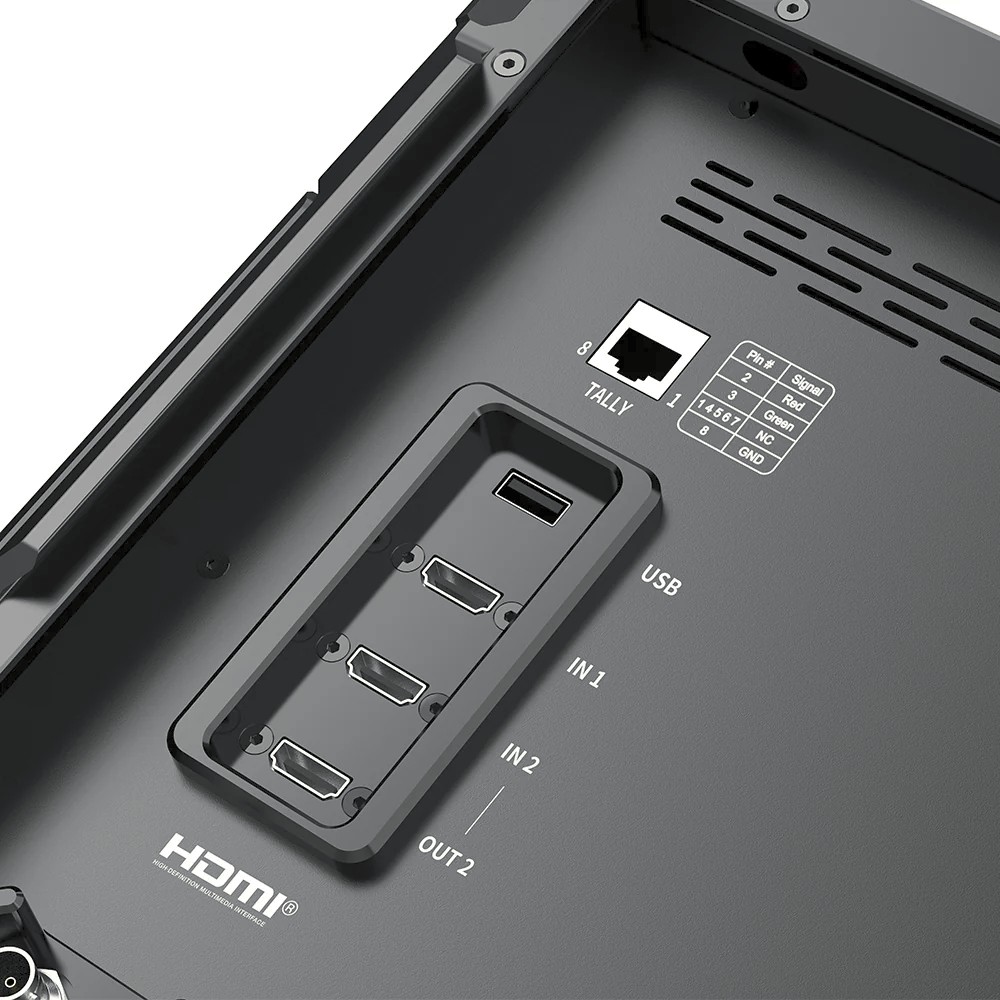Der Monitor unterstützt die vollständige Wellenformüberwachung für SDI- und HDMI-Signale und bietet eine Belichtungs- und Farbanalyse auf Frame-Ebene für eine zuverlässige Bildsteuerung. Die professionelle Konnektivität umfasst drei 3G-SDI-Eingänge mit Loop-Ausgängen und zwei HDMI 2.0-Eingänge mit einem Ausgang, die Signale bis zu 4K 60p unterstützen. Fortschrittliche filmische Werkzeuge wie anamorphotische Entzerrung (1,33x, 1,6x, 2,0x, 2,35x), horizontales und vertikales Cropping sowie 9:16-Kompositionsmarkierungen machen den D21 Pro besonders leistungsstark für Film-, Werbe- und Social-Media-Produktionen.