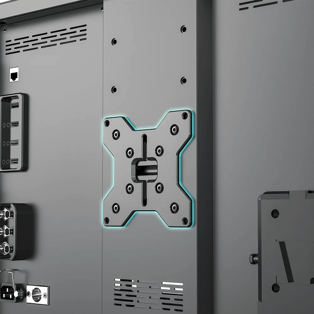Der D21 Pro wurde für anspruchsvolle Umgebungen entwickelt und verfügt über ein druckfestes Verbundgehäuse, das einer Belastung von bis zu 80 kg standhält und mit militärtauglichen, gegen Kollisionen geschützten Eckenschutzvorrichtungen verstärkt ist, die für Stürze aus 1,5 Metern Höhe getestet wurden. Mehrere 1/4"-20- und 3/8"-Befestigungspunkte und die Kompatibilität mit VESA-Halterungen ermöglichen eine nahtlose Integration in Lichtstative, Wagen und Studio-Rigs. Die Stromversorgung ist flexibel durch Netzstrom, XLR-Gleichstromeingang oder V-Mount-Akku-Unterstützung gewährleistet, sodass die Kamera für Studio-, Außen- oder mobile Aufnahmeszenarien geeignet ist. Eine nach vorne gerichtete dreifarbige Tally-Leuchte (rot/grün/blau) erhöht die Eignung für Live-Produktionen und Broadcast-Umgebungen zusätzlich.