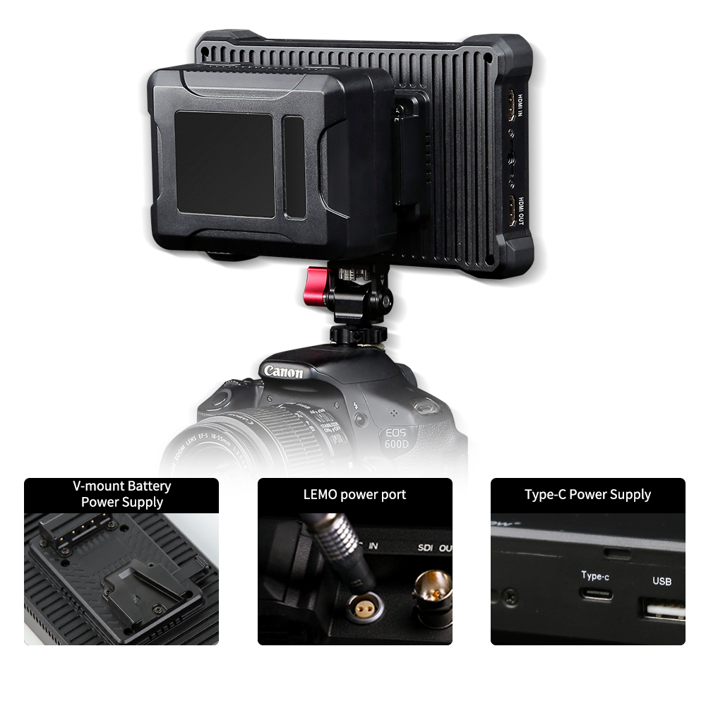 Der HDMI/SDI-Monitor unterstützt zwei NP-F-Batterien, einen Gleichstromeingang und eine Typ-C-Stromversorgung und bietet so ein benutzerfreundliches Mehrfach-Stromversorgungssystem, mit dem Sie sich von der Angst vor Batterien verabschieden können. Aufgerüstet auf die Unterstützung von 4K-Eingang bei 60 Hz und mit Loop-Ausgang, was eine tadellose Erhaltung von dynamischen Bildern mit hoher Bildrate und ein verbessertes Überwachungserlebnis gewährleistet.