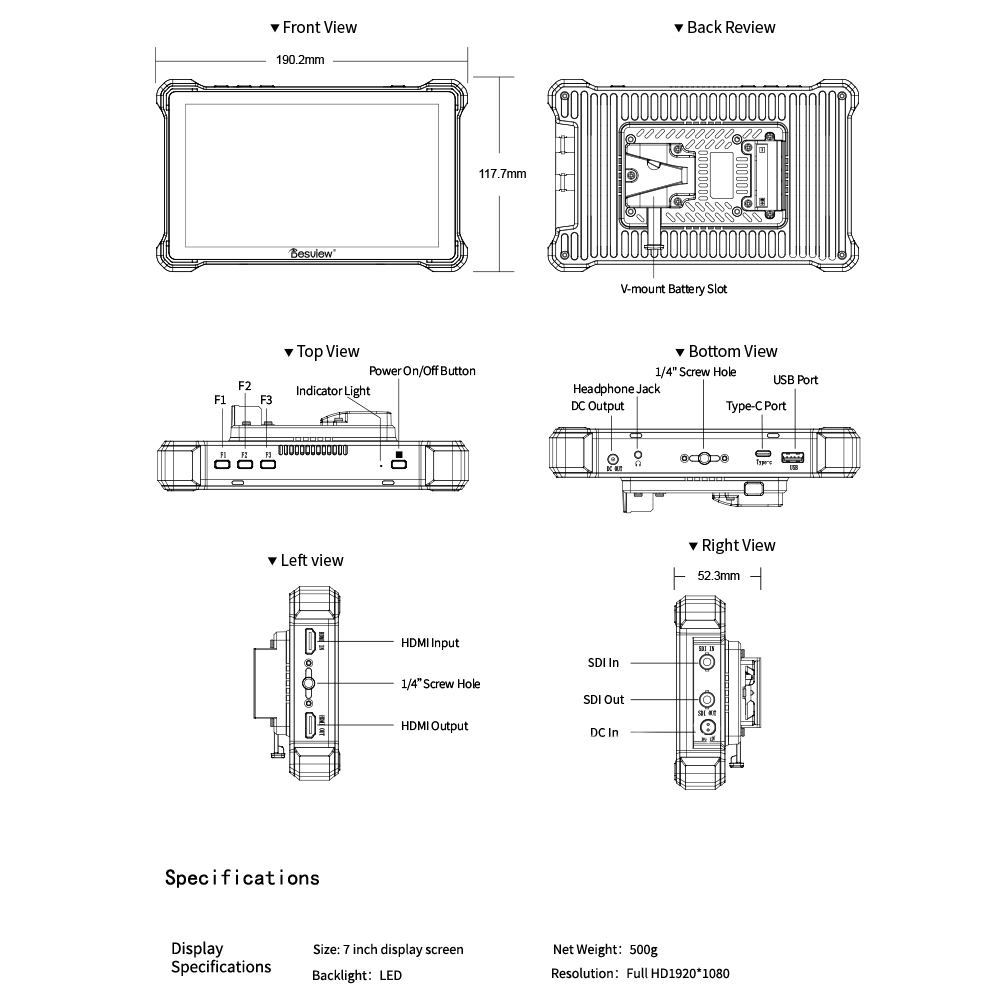 Der HDMI/SDI-Monitor unterstützt zwei NP-F-Batterien, einen Gleichstromeingang und eine Typ-C-Stromversorgung und bietet so ein benutzerfreundliches Mehrfach-Stromversorgungssystem, mit dem Sie sich von der Angst vor Batterien verabschieden können. Aufgerüstet auf die Unterstützung von 4K-Eingang bei 60 Hz und mit Loop-Ausgang, was eine tadellose Erhaltung…