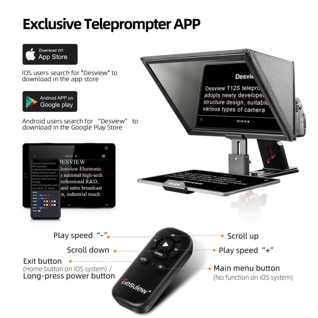 Der professionelle Teleprompter Desview T12S mit der Katalognummer des-T12S ermöglicht Ihnen das flüssige Lesen von Skripten bei Videoaufnahmen oder Präsentationen. Dieser leistungsstarke Teleprompter ist ideal für Vlogger, Content-Ersteller, professionelle Moderatoren und für Unternehmenszwecke. Dank seiner einfachen Bedienung und hohen Zuverlässigkeit hilft Ihnen der Desview T12S dabei, professionelle Ergebnisse zu erzielen und Ihre Sicherheit vor der Kamera zu erhöhen. Entdecken Sie den neuen Standard für das Lesen von Texten bei jeder Art von Aufnahme.