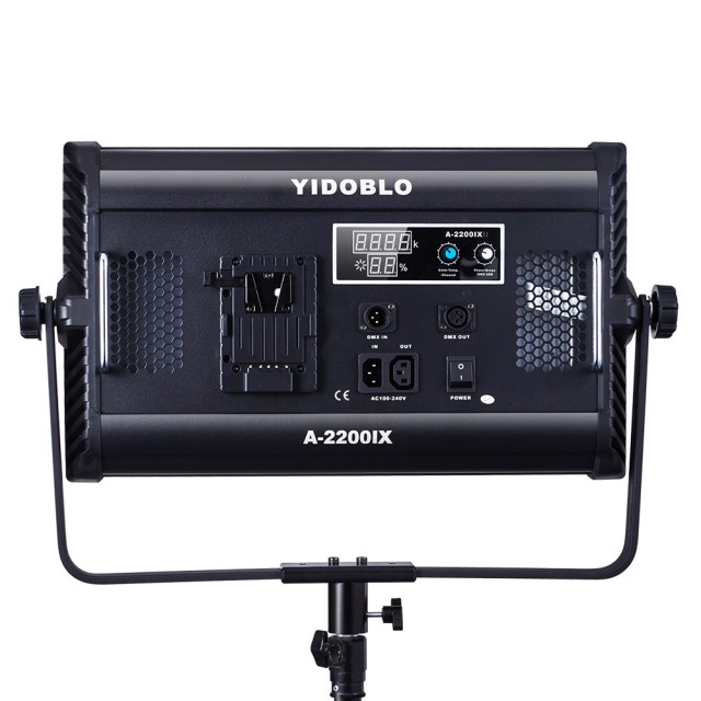 Digitale Anzeige: ja. Material: Aluminium. Farbtemperatur: zweifarbig 3200-5600K ± 300K dimmbar. Leistung:100W. 648 Stück SMD-LEDs. Leuchtwinkel: 120. Lichtstrom:20000LM. CRI:RA97. Akku-Unterstützung:SONY-Akku F550/750/970 + V-Mount-Akku-Clip (optional). AC-Eingang: AC: 85V-265V 50Hz- 60Hz DC: 15V5A. Größe des Lichts: 51*29*6cm