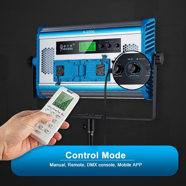 150W SMD LED-Panel 5500K ±300K, 15000 lm, ≥95RA, Abstrahlwinkel 75°. Manuelle Steuerung und Fernsteuerung möglich (Fernbedienung nicht im Lieferumfang enthalten), Unterstützung des DMX-Protokolls und Steuerung per App. Stromversorgung 110-220VAC / 14.8V=, Netzadapter im Lieferumfang enthalten. Nicht im Lieferumfang enthalten sind der Akku (FD-BP130L) und die…