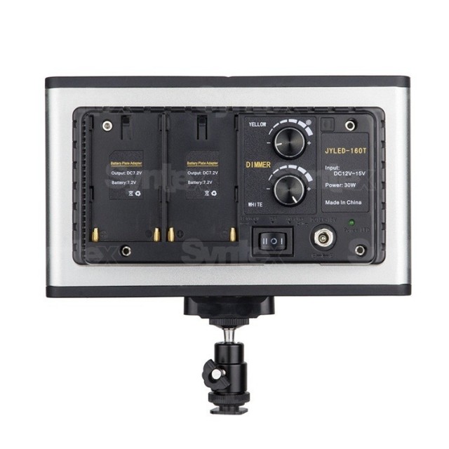 Die Kamera-LED-Scheinwerfer von Dison verwenden moderne, effiziente LED-Elemente mit einer durchschnittlichen Lebensdauer von 50.000 Stunden und werden mit einem Paar handelsüblicher Sony F-Batterien oder einem externen 12-15 VDC-Netzteil betrieben. Die leuchtstarken LED-Elemente erzeugen Lichtstärken von bis zu 3200 lx (beim 120T) bzw. 4000 lx (160T); Intensität und Farbtemperatur lassen sich auf der Rückseite des Geräts einfach einstellen. Der Scheinwerfer ist in einem soliden und sehr leichten Aluminiumgehäuse mit einem Gesamtgewicht von ca. 200 g ohne Batterien eingebaut! Dadurch lässt sich der Scheinwerfer problemlos an kleineren Kameras oder DSLR/DSLM-Kameras betreiben, an denen er mit einer Standard-Blitzbuchse befestigt wird.