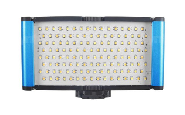 Die Kamera-LED-Scheinwerfer von Dison verwenden moderne, effiziente LED-Elemente mit einer durchschnittlichen Lebensdauer von 50.000 Stunden und werden mit zwei handelsüblichen Sony F-Batterien oder einem externen 12-15 VDC-Netzteil betrieben. Die leuchtstarken LED-Elemente erzeugen Lichtstärken von bis zu 3200 lx (beim 120T) bzw. 4000 lx (160T); Intensität und Farbtemperatur lassen sich auf der Rückseite des Geräts einfach einstellen. Der Scheinwerfer ist in einem soliden und sehr leichten Aluminiumgehäuse mit einem Gesamtgewicht von ca. 200 g ohne Batterien eingebaut! Dadurch lässt sich der Scheinwerfer problemlos an kleineren Kameras oder DSLR/DSLM-Kameras betreiben, an denen er mit einer Standard-Blitzbuchse befestigt wird.