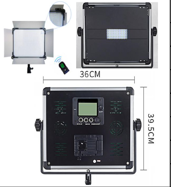 LED-Lichtpaneel 48W, 3900Lumen,97RA. LCD-Display, DMX 512 Steuerung, manuelle Steuerung, drahtlose Fernbedienung.