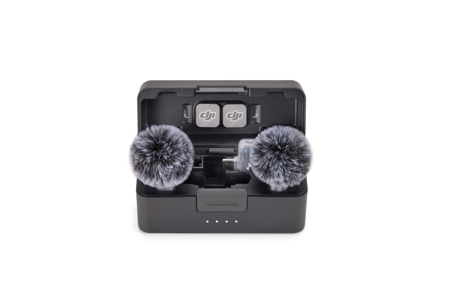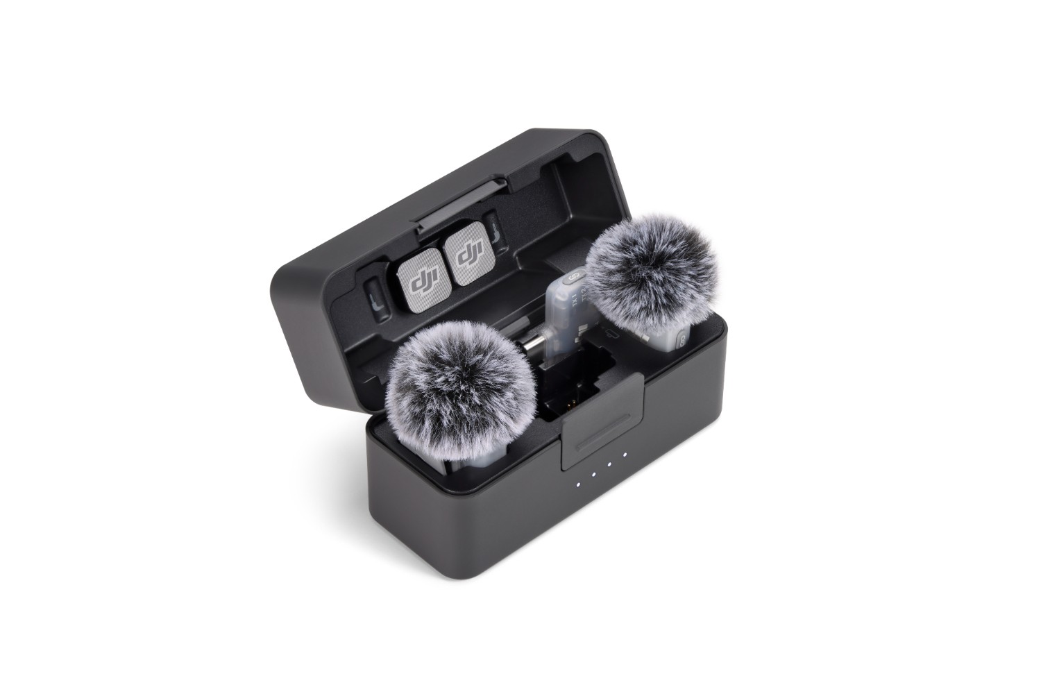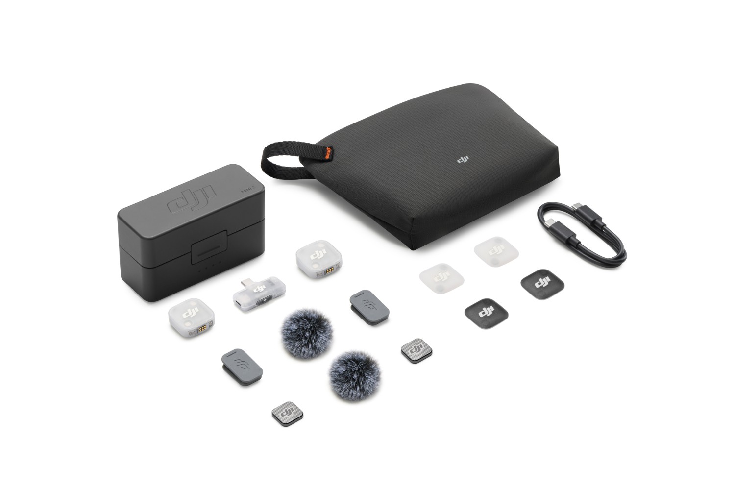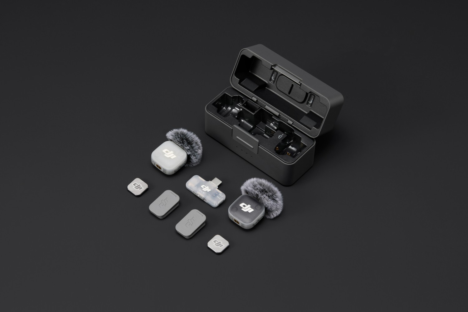 Das DJI Mic Mini 2 bietet acht farbige magnetische Frontabdeckungen und fünf farbige Windschutzkappen, die Sie auf jedes Outfit abstimmen können. Ebenfalls erhältlich sind der DJI Mic Series Mobile Receiver und der DJI Mic Series Camera Adapter.