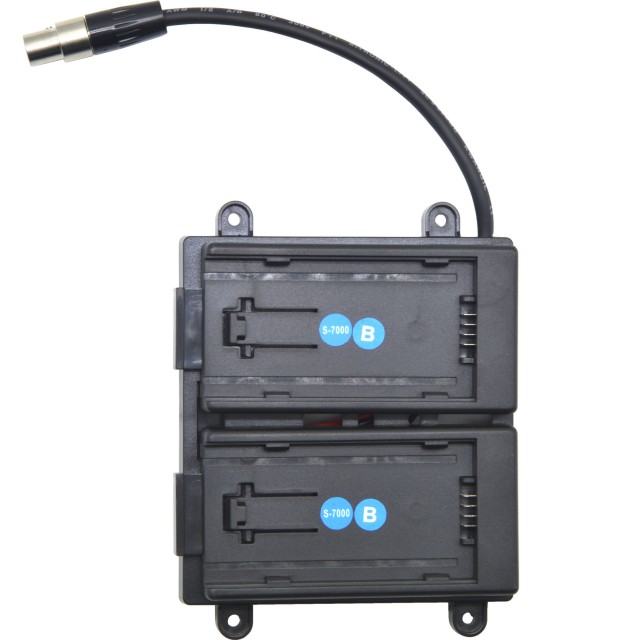Betreiben Sie Ihren F-7H Monitor mit zwei Panasonic AF-100 Batterien, indem Sie diese Batteriehalterung von TVLogic anschließen. Die Panasonic AF-100 Halterung wird an der Rückseite des F-7H Monitors befestigt und in den 4-poligen XLR-Mini-Stromanschluss des Monitors eingesteckt. Sie liefert 12 VDC, 3A Strom.