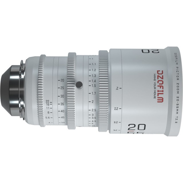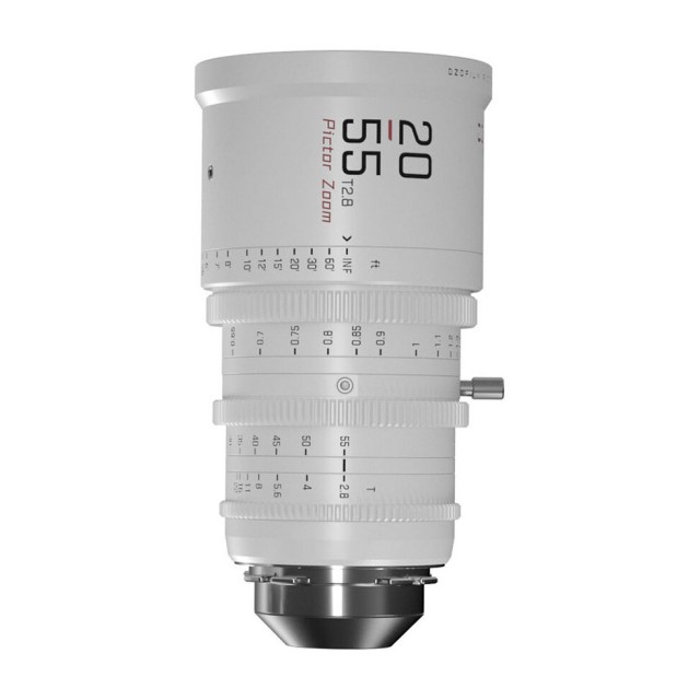 Das parfokale Filmobjektiv DZO Pictor 20-55mm T2,8 eignet sich für Sensoren im Super 35 / APS-C Format, bietet über den gesamten Brennweitenbereich eine Lichtstärke von T2,8 und wird mit austauschbaren PL- und EF-Bajonetten geliefert. Die Konstruktion des Objektivs verhindert praktisch das Atmen des Objektivs und sorgt für eine durchgängig scharfe Zeichnung und dank der 16er-Streulichtblende für eine schöne Wiedergabe des Motivs über die Tiefenschärfe hinaus. Selbstverständlich sind die Ringe für Fokus, Blende und Zoom geriffelt, um eine einfache Fernsteuerung mit Side-Focus-Systemen zu ermöglichen (M0.8; Fokusringweg 270°). Der vordere Durchmesser ist der Standard 95mm für konventionelle Kompendien, das Filtergewinde ist 86mm. Außerdem gibt es einen Fuß, um das Objektiv im Rig zu halten. Weiße Version. Gewicht ca. 1520 g. Für PL- und EF-Bajonette.