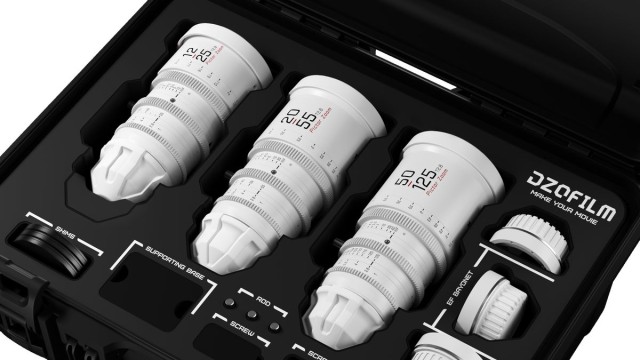 Das Pictor T2.8 Super35 Zoom 3-Objektiv-Bundle von DZOFilm besteht aus drei Zoomobjektiven - 12-25mm, 20-55mm und 50-125mm - in einem Hartschalenkoffer. Die Objektive decken einen erweiterten Zoombereich mit einer relativ schnellen maximalen Blende ab. Alle Objektive sind für Super35-Sensoren geeignet und weisen ähnliche Längen, Gewichte, Objektivpositionen…