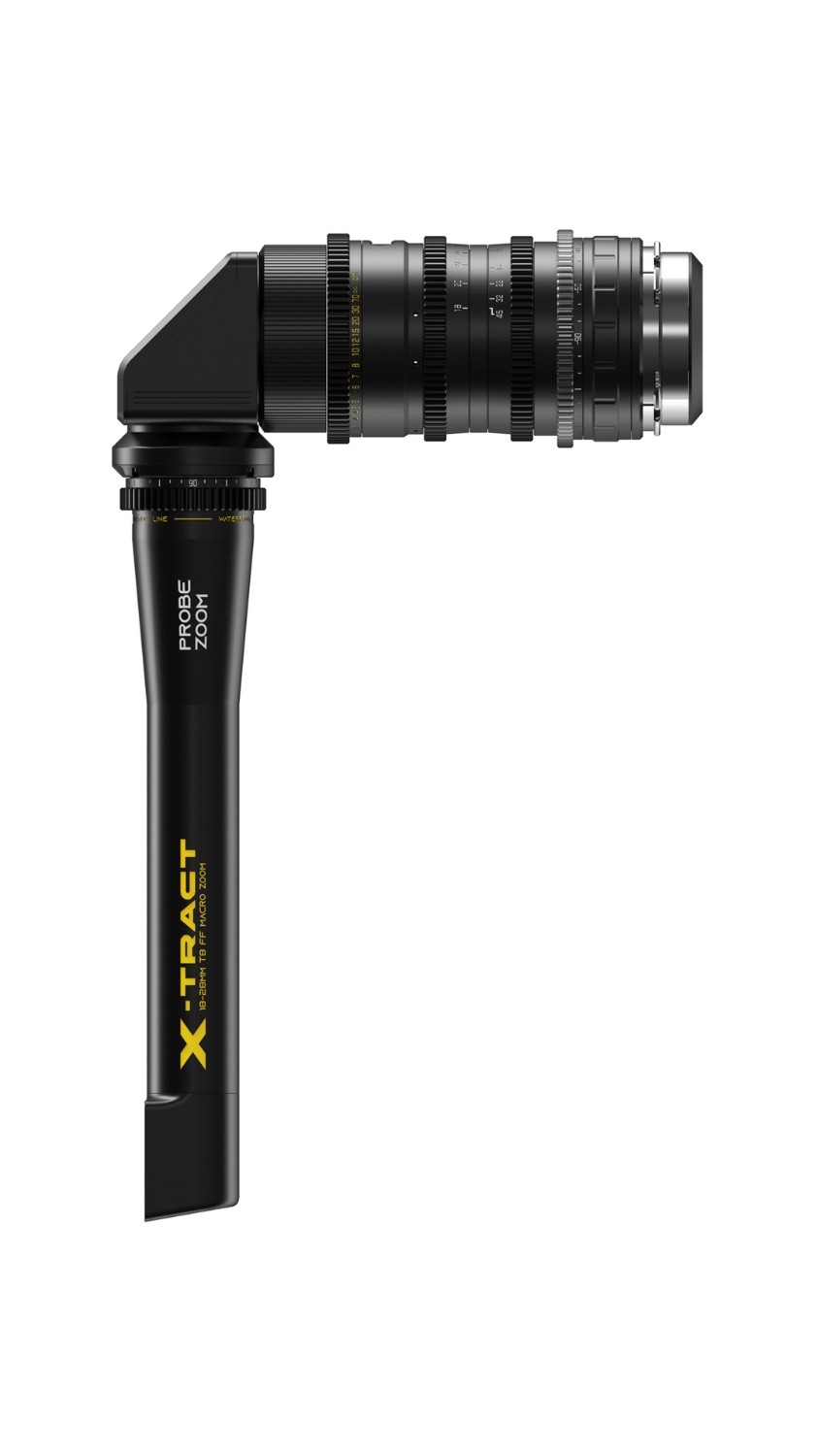 Das Weitwinkel-Zoomobjektiv X-tract 18-28 mm T8 definiert die Makro-Kinematografie neu mit austauschbaren Frontmodulen von 0° (direkte Sicht) und 90° (rechtwinklig) und bietet vielseitige Aufnahmeperspektiven und grenzenloses kreatives Potenzial. Es wurde für Vollformat entwickelt und ist vollständig kompatibel mit S35-Formaten. Im Arri Alexa 35 Open Gate-Modus bietet es einen äquivalenten Bereich von 22-35 mm T8 und ist damit ideal für die kommerzielle Filmproduktion. Das abnehmbare Frontmodul-Design ermöglicht einen nahtlosen Wechsel zwischen Direktansicht und rechtwinkliger Einstellung und erleichtert so die Fokussierung und Winkeleinstellung auch in engen Räumen. Diese Anpassungsfähigkeit verbessert die räumliche Tiefe und Schichtung der Bilder und bietet Filmemachern mehr Flexibilität für kreatives Storytelling.