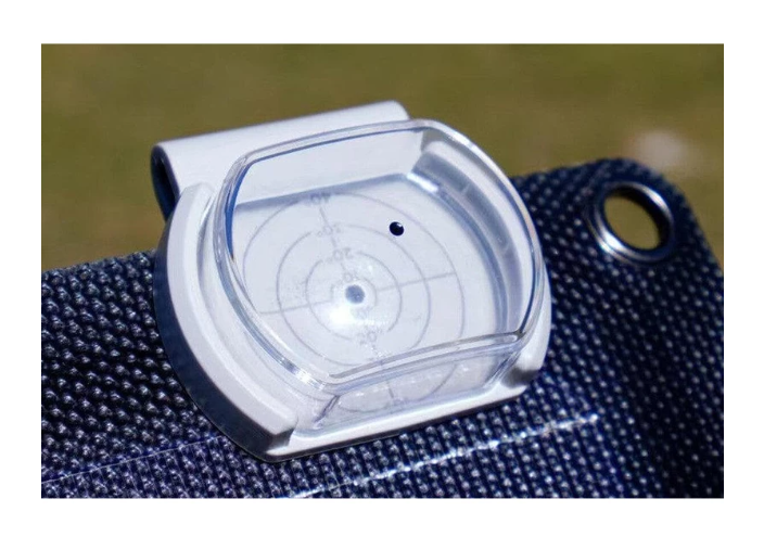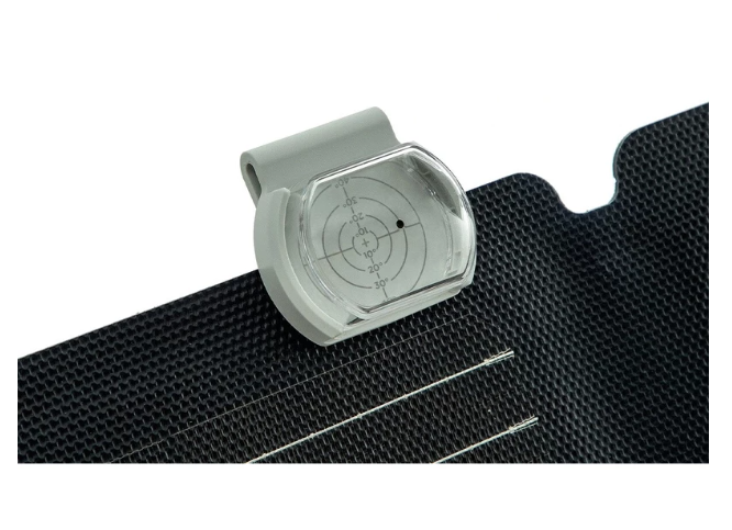 Der EcoFlow Solar Angle Guide (1ECOSAG) wurde entwickelt, um Ihnen dabei zu helfen, die Sonnenenergie effizient zu nutzen, indem Ihre Solarmodule perfekt auf das Sonnenlicht ausgerichtet sind. Mit seinem kompakten und leichten Design (50 × 54 × 30 mm, 25 g) lässt sich dieser Guide leicht an der Kante jedes Solarmoduls befestigen. Richten Sie das Modul einfach so aus, dass die Sonne durch die transparente Abdeckung scheint, und justieren Sie es, bis der Schatten die Mitte der Führung erreicht. So stellen Sie sicher, dass Ihr Modul senkrecht zu den Sonnenstrahlen steht, wodurch die Sonneneinstrahlung maximiert und die Ladezeit verkürzt wird.
