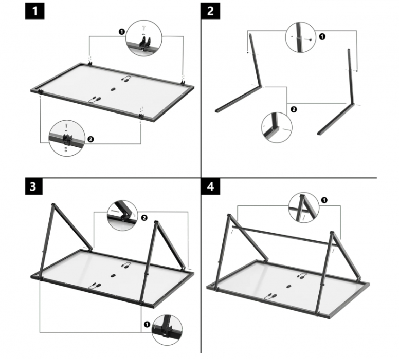 Für mehr Mobilität unterstützt die Halterung die Anbringung optionaler Räder (separat erhältlich), mit denen Sie Ihre Solarmodule je nach den wechselnden Sonnenlichtbedingungen oder Standortanforderungen leicht bewegen und neu positionieren können.