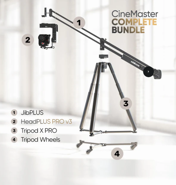 Das Edelkrone CineMaster Complete Bundle bietet ein voll integriertes, motorisiertes Kamerasystem mit JibPLUS, HeadPLUS PRO v3 und zusätzlichem Zubehör, mit dem professionelle Filmemacher komplexe, fließende und präzise Kamerabewegungen für filmische Aufnahmen realisieren können.