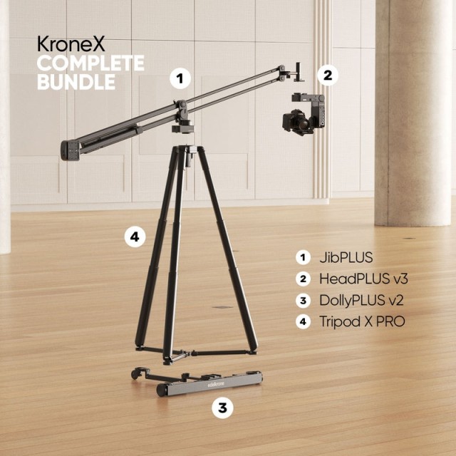 Edelkrone KroneX Bundle - Komplett: Beinhaltet HeadPLUS v3, JibPLUS, DollyPLUS v2 und Stativ X PRO für präzise Kamerabewegungen und dynamische Aufnahmen.