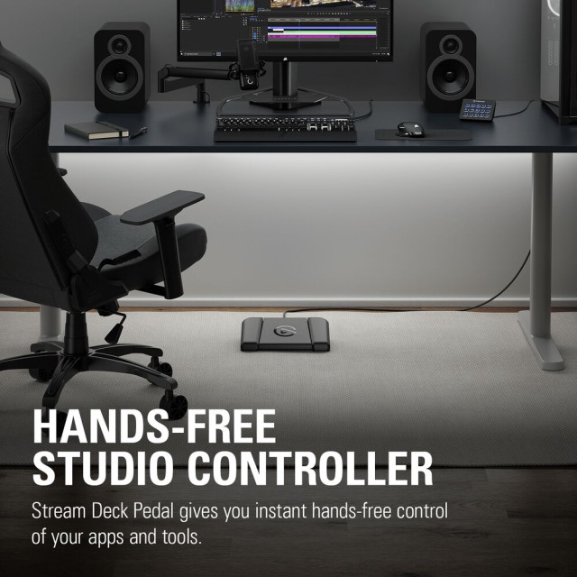 Das Stream Deck Foot Pedal von Elgato ist die ideale Ergänzung zum Elgato Stream Deck MK2. Es ermöglicht Ihnen die freihändige Steuerung Ihrer Apps und Tools und ist voll kompatibel mit anderen Tastaturen und Controllern der Marke Corsair. Das Stream Deck Foot Pedal verfügt über drei Pedale, mit denen Sie unbegrenzte Aktionen starten können. Mit einem Tastendruck können Sie Ihre Software und Hardware steuern. Das Stream Deck Foot Pedal ist in einem robusten Gehäuse mit rutschfesten Füßen und so genannten "griffigen Oberflächenpedalen" untergebracht, die für eine bessere und präzisere Traktion sorgen. Das Stream Deck Foot Pedal steigert Ihre Produktivität und erleichtert Ihre Arbeitsabläufe, indem es eine freihändige Steuerung und Funktionalität bietet.