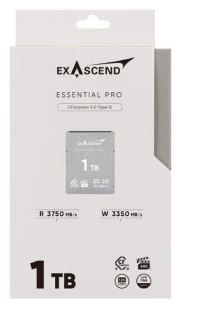 Die Exascend EXPC4EB001TB Essential Pro CFexpress 4.0 Typ B 1 TB-Karte bietet Kreativen Lesegeschwindigkeiten von 3750 MB/s und Schreibgeschwindigkeiten von 3350 MB/s für nahtlose 8K/12K-Videos mit 120 fps. Sie ist VPG-400-zertifiziert und verfügt über adaptive Temperaturregelung, hohe Lebensdauer (600 TB TBW) und eine lebenslange Garantie mit Datenwiederherstellung.
