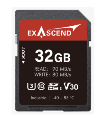 Die Exascend Industrial SD300 V30 C10 SD 6.0 32 GB (EX32GSDV30-IDE) ist eine robuste SDXC-Karte für industrielle Anwendungen, die mit V30/U3/C10/A2-Bewertungen Lesegeschwindigkeiten von bis zu 90 MB/s und Schreibgeschwindigkeiten von bis zu 80 MB/s für zuverlässige 4K-Videoaufnahmen und Serienaufnahmen bietet. Sie ist für einen Betriebstemperaturbereich von -40 °C bis +85 °C ausgelegt und bietet eine MTBF von 2.000.000 Stunden, eine Lebensdauer von bis zu 1.210 TBW und eine Eingangsspannung von 2,7–3,6 V – ideal für raue Umgebungen wie Überwachungs-, Automobil- oder eingebettete Systeme.