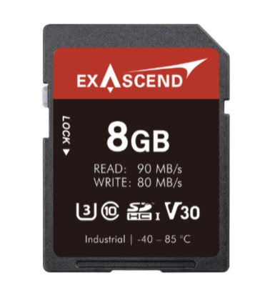 Die Exascend Industrial SD300 V30 C10 SD 6.0 8 GB (EX8GSDV30-PIDE) ist eine robuste SDXC-Karte für industrielle Anwendungen, die mit 3D-TLC/pSLC-NAND-Speicher eine Lesegeschwindigkeit von bis zu 90 MB/s und eine Schreibgeschwindigkeit von bis zu 80 MB/s bietet. V30/U3/C10/A2-Zertifizierungen für zuverlässige 4K-Videos und Bursts. Mit einem Betriebsbereich von -40 °C bis +85 °C, SMART-Zustandsüberwachung, einer MTBF von 2.000.000 Stunden und einer Eingangsspannung von 2,7–3,6 V gewährleistet sie Langlebigkeit in rauen Umgebungen wie Überwachungs- oder Embedded-Systemen.