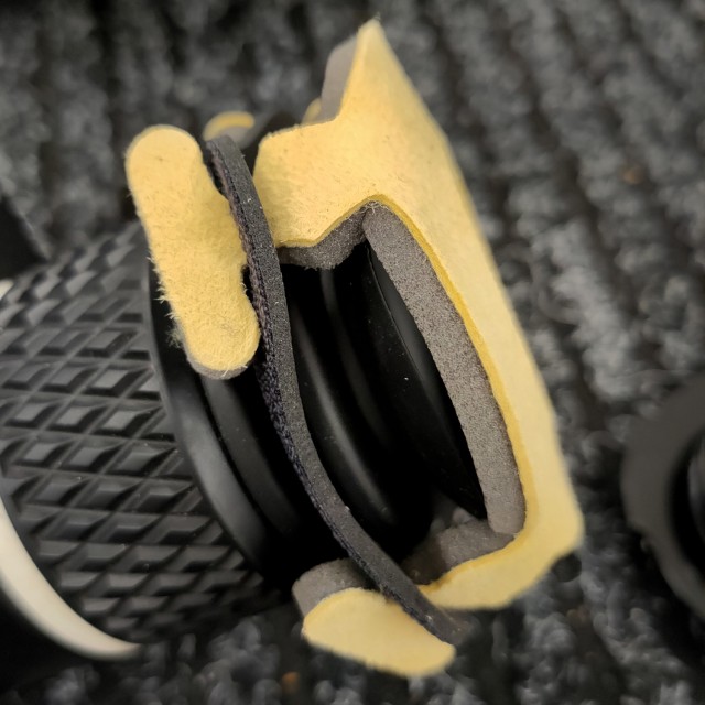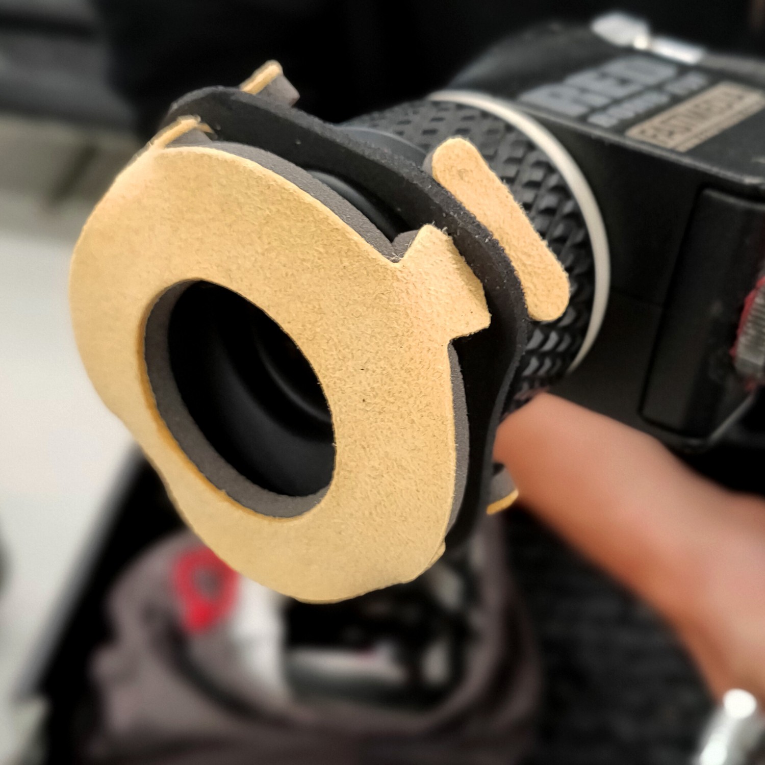 Der elastische Schaumstoffkern des Polsters behält seine Form und Ausrichtung auf dem RED EVF Red Special bei und sorgt für einen sicheren Sitz auch bei längeren Dreharbeiten. Das natürliche, ungefärbte Ecru-Leder verleiht Ihrer Kameraausrüstung einen professionellen und eleganten Touch. Dieses Augenpolster eignet sich perfekt für Studio-, Außen- oder Außenaufnahmen und vereint Langlebigkeit, Komfort und Hygiene, was es zu einem unverzichtbaren Accessoire für jeden RED-Operator macht.