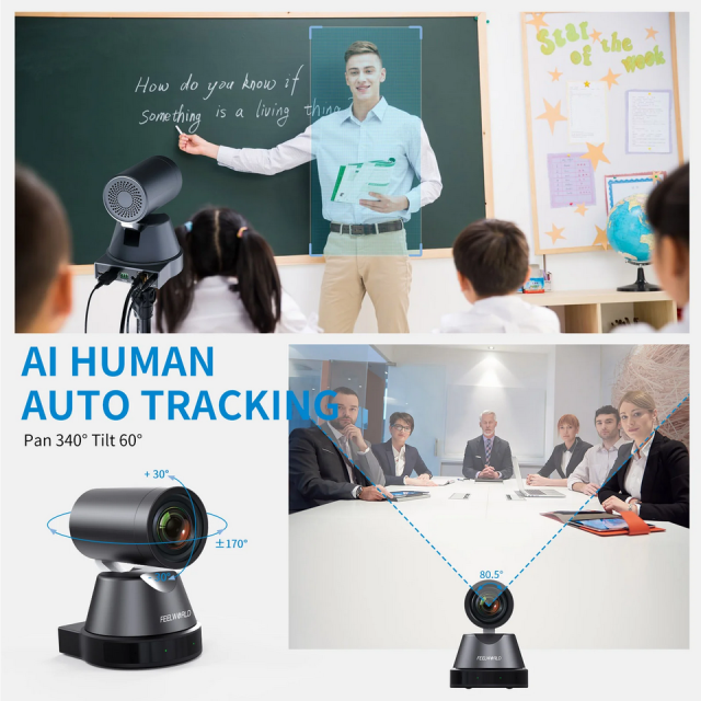 Mit Echtzeit-Tracking und Zone tracking.The Kamera kann automatisch verfolgen Sie in Echtzeit, so dass Sie in der Mitte bleiben. Geeignet für Gottesdienste, Gottesdienste, Unterricht und Bildung, Broadcast, High-Tech-Konferenz, Summit Forum, Events.