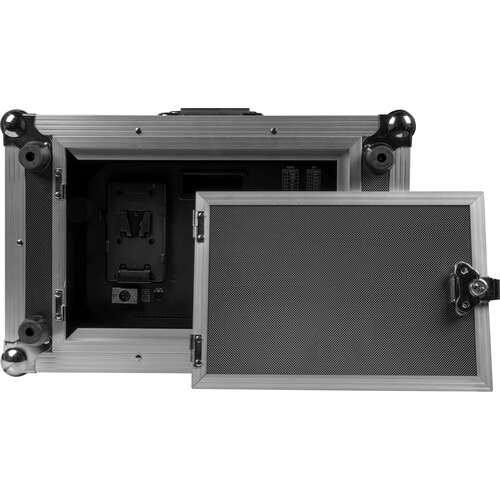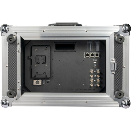 Die VESA-Mount-Kompatibilität (75 x 75 mm, 100 x 100 mm) sorgt für Flexibilität und ermöglicht einfache Montageoptionen. Die V-Mount-Akkuplatte unterstützt den mobilen Betrieb, und 12 V DC/XLR-Stromeingänge bieten alternative Stromversorgungslösungen.