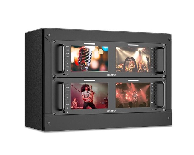 FEELWORLD D71 PLUS Monitore sind die ideale Wahl für 3G-SDI- oder 4K-HDMI-Überwachung überall dort, wo Sie sie benötigen. Es hat 2 unabhängige 7-Zoll-Displays können zwei verschiedene Kameras gleichzeitig überwachen, es einfach in Videowand oder Übertragungswagen dank seiner 3RU Formfaktor zu installieren. Sie können sie für Broadcast, Postproduktion, Überwachung am Set, Flyaway-Kits, Übertragungswagen und mehr verwenden.
