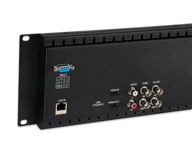 Für jeden Bildschirm gibt es eine TALLY-Anzeige auf der Vorderseite mit 3 Farben (Rot, Grün, Gelb), die über DB-9-Anschlüsse auf der Rückseite gesteuert wird. Verbessern Sie die Zusammenarbeit im Team.
