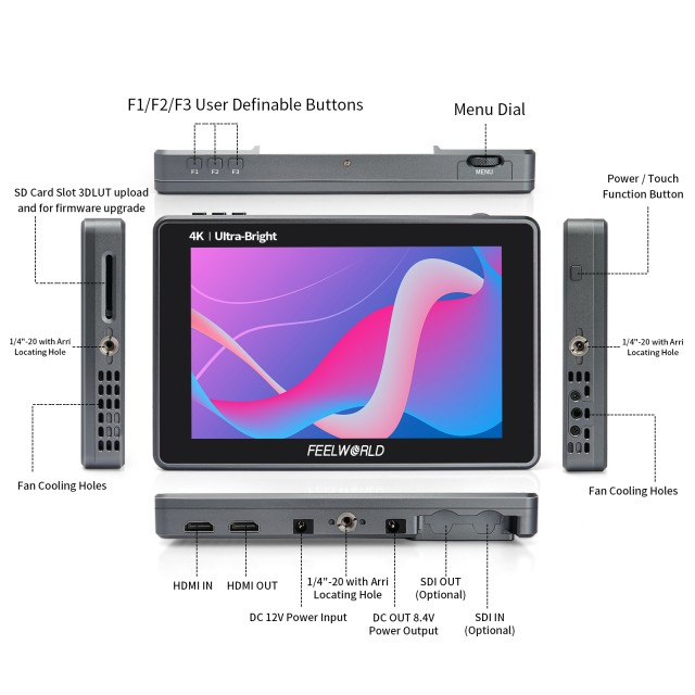 - Peaking Focus Assist (rot, grün, blau, weiß, gelb fünf Peaking-Farben optional; 1~10 Peaking-Level einstellbar)