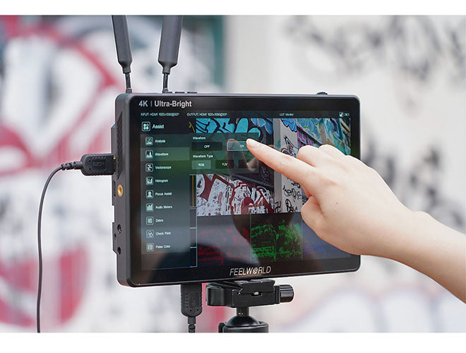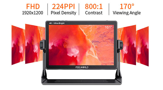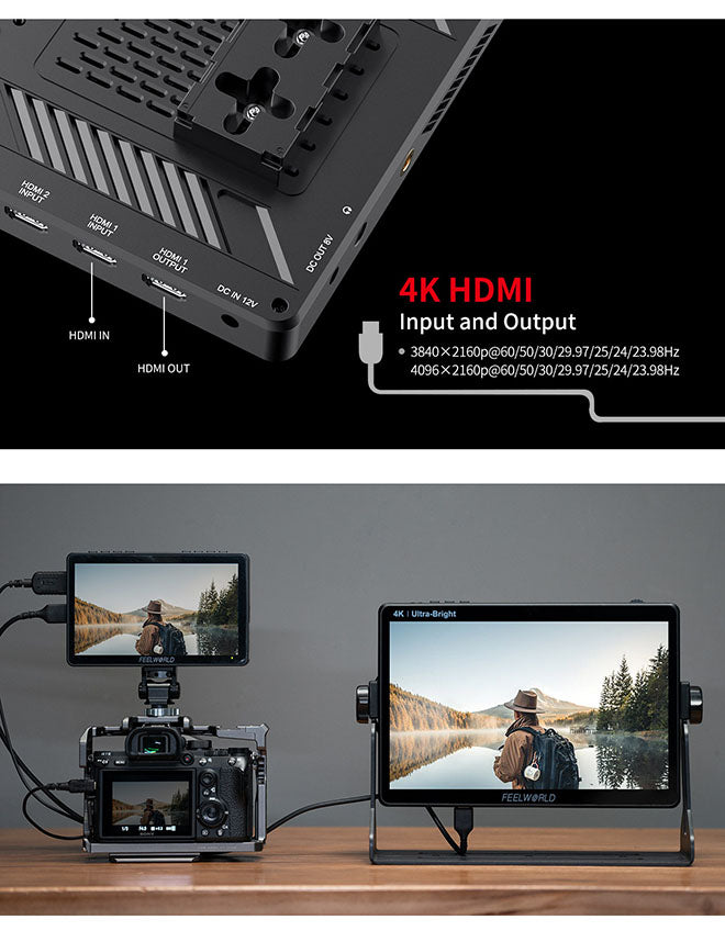 FEELWORLD LUT11H ist ein professioneller 10,1-Zoll-Kameramonitor mit Touchscreen und einer Helligkeit von 2000nit. Unterstützt bis zu 4K@60Hz HDMI-Signaleingang und -ausgang. Bietet eine Reihe von Überwachungs- und Framing-Tools mit neuem Menü-Layout, verschiedene numerische Parameter sind klar auf einen Blick, so dass die Bedienung einfacher. Auf der Rückseite des LUT11H befindet sich ein externes Installations- und Stromversorgungs-Kit F970, mit dem drahtlose Übertragungen, LED-Leuchten usw. installiert werden können. Es kombiniert den Monitor mit drahtloser Übertragung, um unnötige Kabel loszuwerden, was perfekt für die Überwachung des Regisseurs ist, 1. Die Dual-Batterieplatten Design kann zwei F970 Batterien zur gleichen Zeit für eine lange Stromversorgung auch im Freien zu installieren. Ideal für Außenaufnahmen der Crew, Überwachung und Postproduktion.