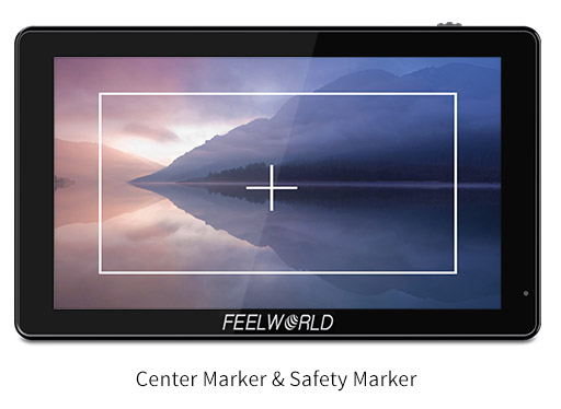 Center Marker & Safety MarkerSafety Marker für die Sichtkontrolle und Komposition (70%, 80%, 90%, 16:9, 16:10, 4:3, 5:4, 1:1, 1.91:1.1, 4:5, 9:16, 1.85:1, 2.35:1). Sie können die Farbe des Markers zwischen gelb, rot, grün, blau, weiß und schwarz umschalten, je nach den verschiedenen Farbtönen des Objekts.