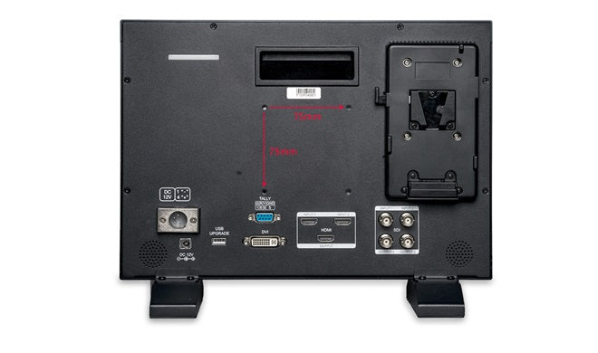 Die Rückseite des Monitors ist mit 75x75mm VESA-Halterungen ausgestattet, so dass Sie ihn in ein Rack einbauen oder an die Wand hängen können. Ideal für Rundfunkstudios oder Live-Produktionen.