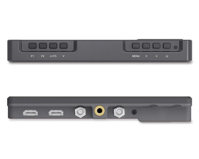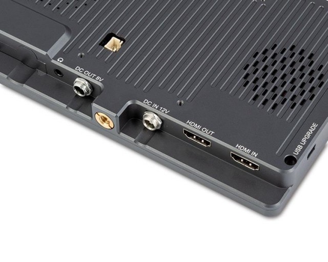 ...bieten die Tasten am oberen Rand des Displays, darunter auch Funktionstasten, die mit beliebigen Funktionen belegt werden können, z.B. Schärfehilfe, Falschfarbendarstellung, etc. An der Unterseite befindet sich ein 1/4"-20-Standardgewinde für die Montage des Monitors an DSLR/DSLM/Kamera-Rigs oder direkt an Kameras mit dem (im Lieferumfang enthaltenen) Blitzsockelreduzierer, und die Rückseite verfügt über VESA-Standardgewinde mit 75 mm Abstand