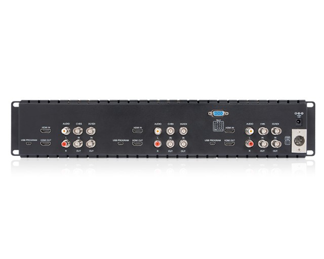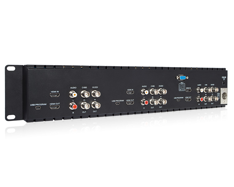 Er ist mit einem 5"-TFT-Panel mit 800x480 Auflösung, 140°/120° Betrachtungswinkel, 500 cd/m2 Helligkeit und 500:1 Kontrast für die Vorschau von SD/HD-Material über 3G-SDI und HDMI-Eingänge ausgestattet. Seine kompakte Größe und sein solides Metallgehäuse mit guter Wärmeableitung machen ihn zu einem idealen Monitor für die Montage in Übertragungswagen, tragbaren Racks oder Tischinstallationen in Studios, Regien oder Veranstaltungsorten. An der Vorderseite jedes Monitors (DB-15) befindet sich eine Signalleuchte (rot/grün/gelb).